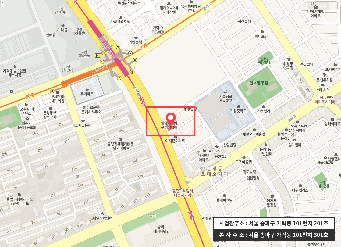 [본사주소] 서울시 송파구 가락동 101번지 301호